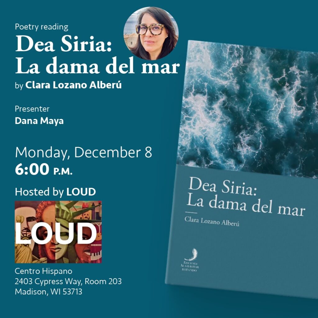 Tonight’s poetry reading with Clara Lozano Alberú is free and open to the public. Light refreshments will be served. Centro Hispano is located at 2403 Cypress Way on Madison’s South Side.