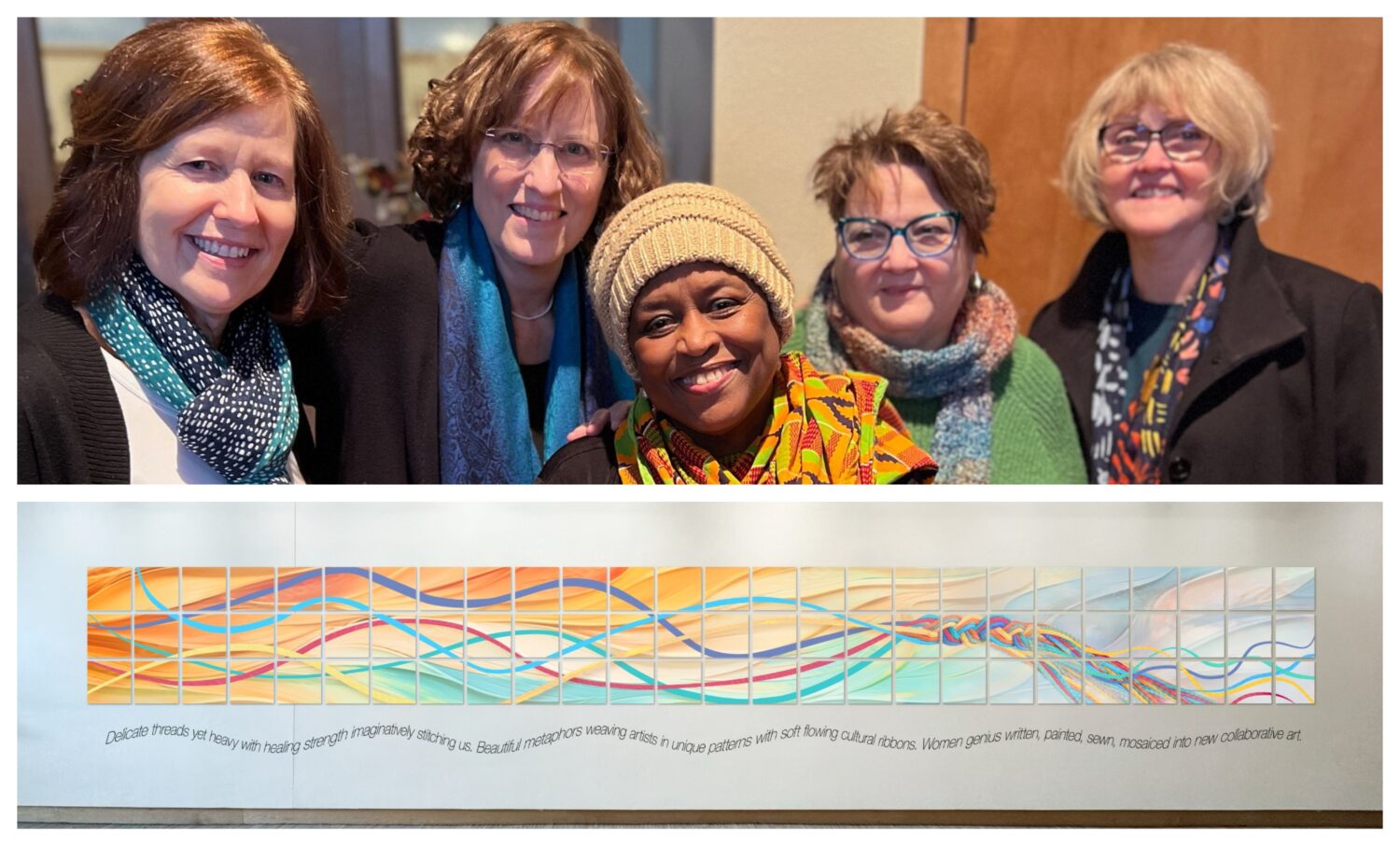 A beautiful piece of collaborative artwork that exemplifies unity has been on display this summer at the gallery of the Overture Center for the Arts called “Threading Through Us,” featuring the work of Janine Bessenecker, Dr. Eugenia Sherman Brown, Bobbette Rose, Cynthia Reynolds, and Dr. Fabu Phillis Carter.
