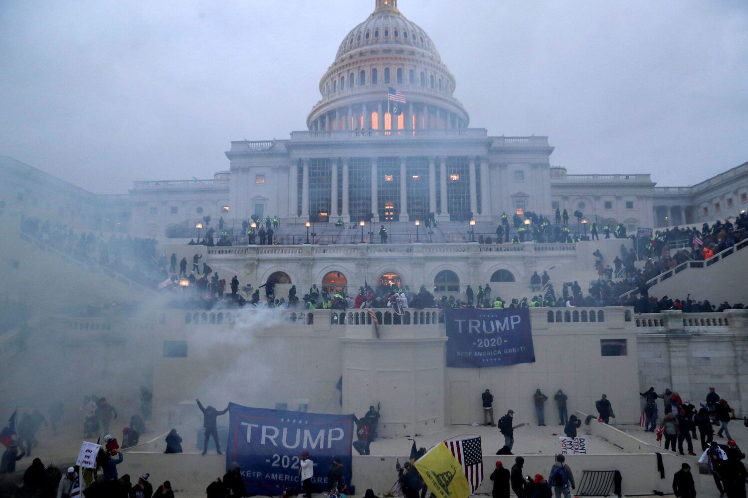 Trump left office just two weeks after the riot and has since repeatedly called January 6 “a day of love and peace” and claimed his supporters posed “zero threat.” His comments are belied by hundreds of video clips of Trump supporters beating police with flagpoles, batons, wooden clubs and baseball bats, deploying stun guns and chemical sprays, and engaging in hand-to-hand combat with police officers.