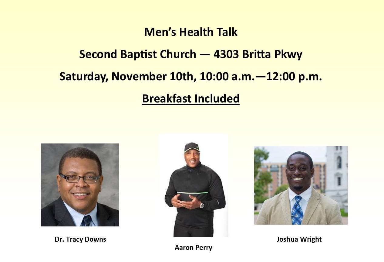 Men’s Health Talk will take place Saturday, Nov. 10, 10 a.m.-noon at 4303 Britta Pkwy.