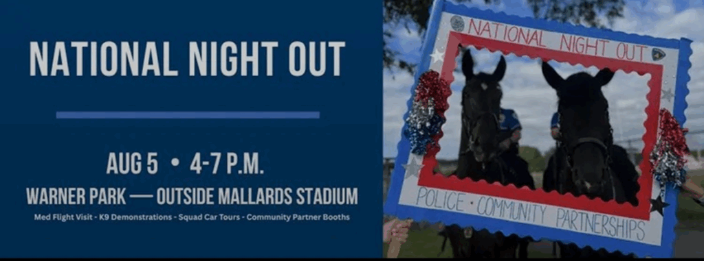 In partnership with the Madison Mallards, a National Night Out event hosted by the Madison Police Department will take place outside of Mallards Stadium at Warner Park (2920 N. Sherman Ave.) on Tuesday, Aug. 5, 4-7 p.m. In its second-last regular season home game of the year, the Mallards will be taking on the Lakeshore Chinooks at 6:05 p.m. that night.