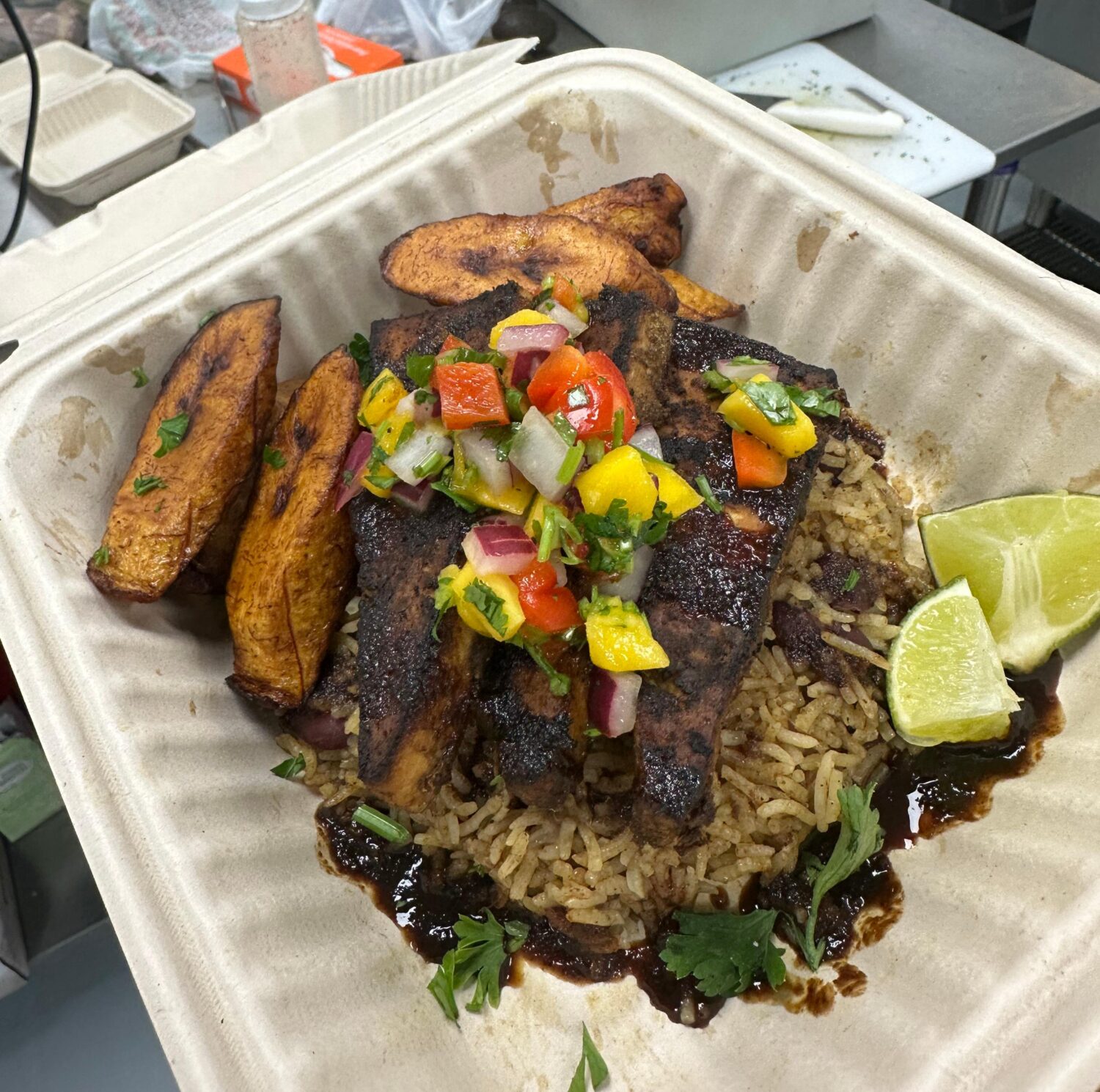 Although the flavors are rooted in Caribbean and Latin cuisine, the chef doesn’t claim heritage from those regions. “I’m a Black American. I cook Caribbean and Hispanic-inspired food because I love the freshness — the balance of simple ingredients with big flavor. Pico de gallo, jerk spices, sautéed cabbage — these are fresh, vibrant, and healing.”